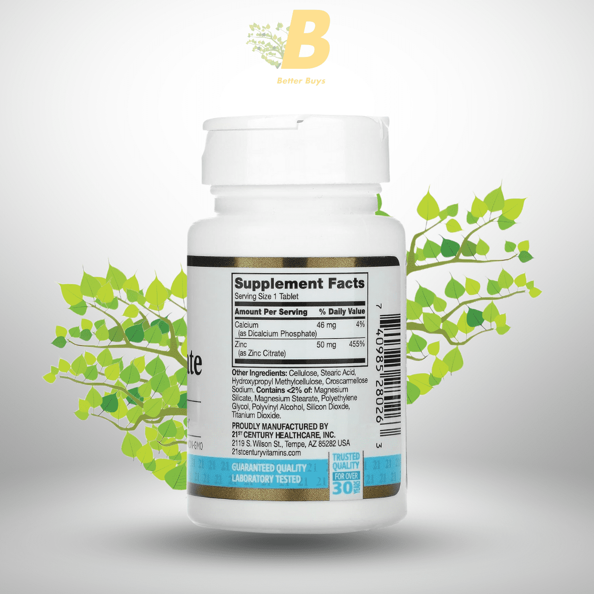 21st Century HealthCare Zinc Citrate Tablets 50mg, 60 Count