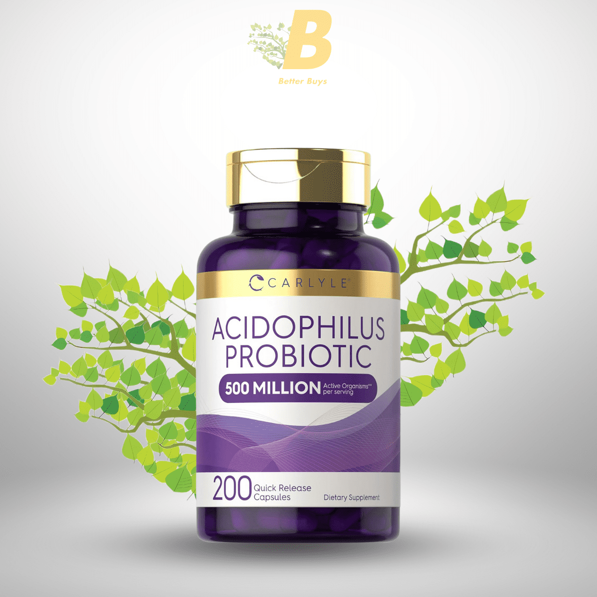 Carlyle Acidophilus Probiotic Capsules for Women and Men | 500 Million CFU | 200 Pills | Lactobacillus Supplement | Non-GMO and Gluten Free
