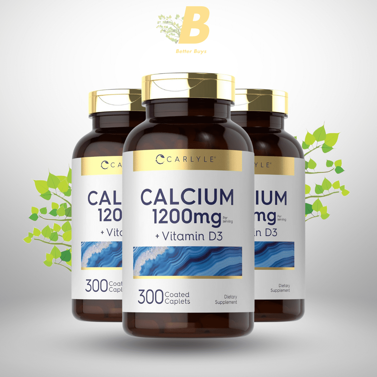 Carlyle Calcium 1200mg with Vitamin D3 | 300 Caplets | Non-GMO, Gluten Free, and Vegetarian