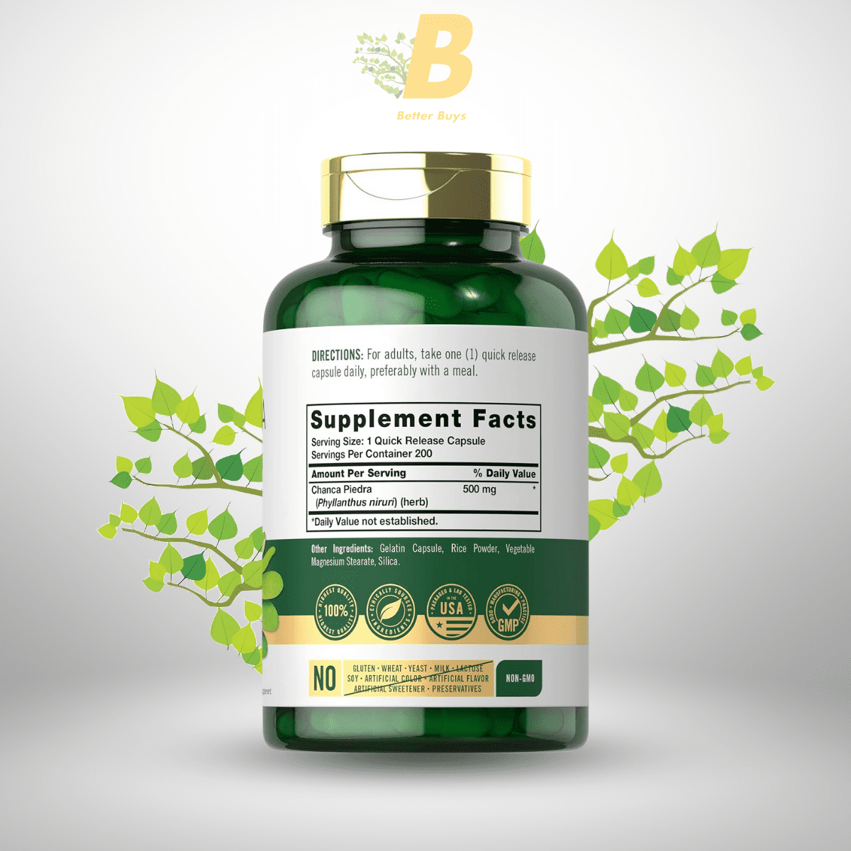 Now available in Bangladesh, Carlyle’s Chanca Piedra 500mg capsules deliver a powerful dose in quick-release form, ensuring optimal absorption. This supplement offers excellent value with 200 capsules per bottle, ideal for long-term wellness support.