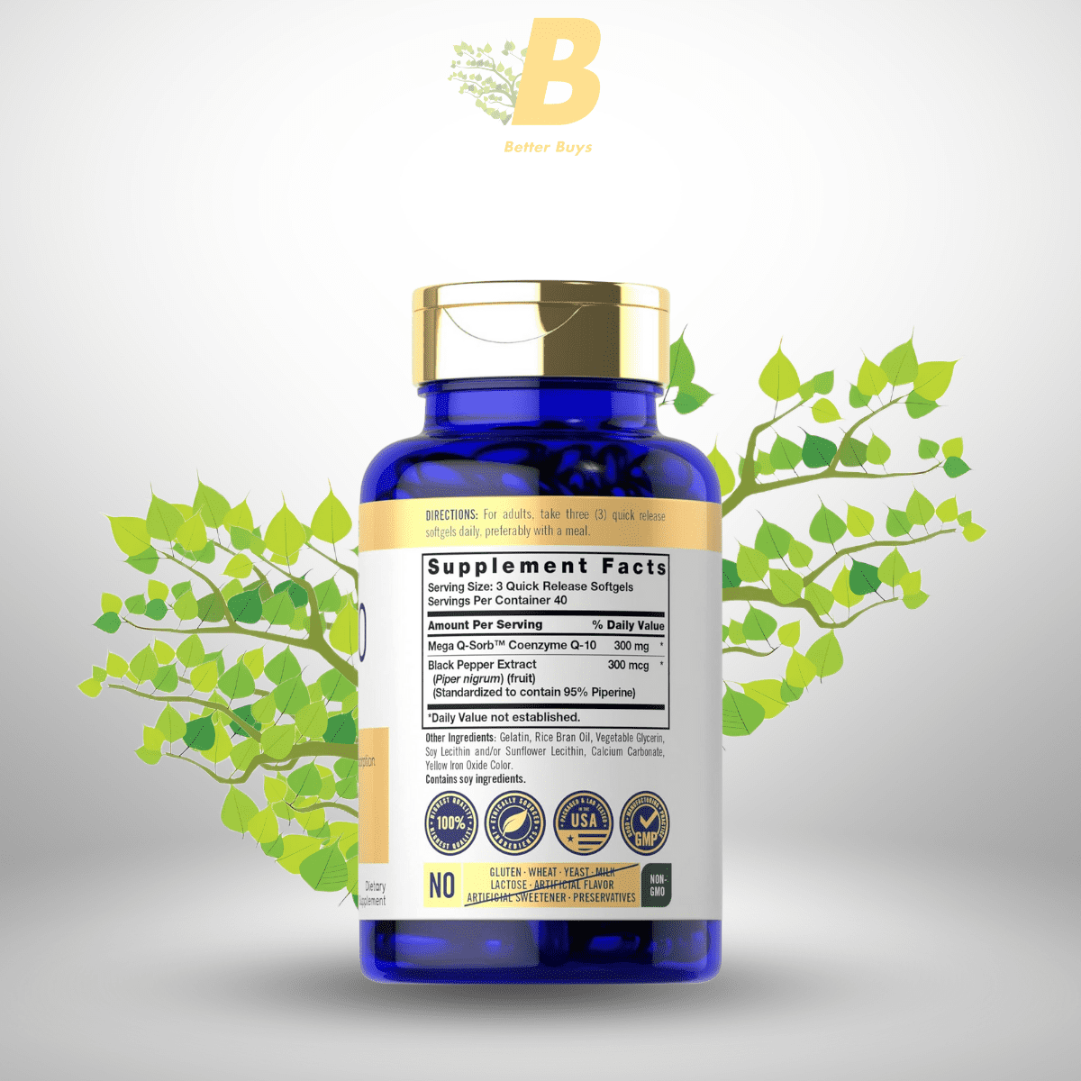 Carlyle CoQ10 300mg | 120 Softgels | Mega Q-Sorb Coenzyme Q-10 | with Black Pepper Extract | Non-GMO, Gluten Free Supplement