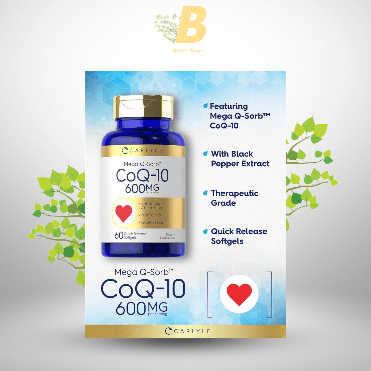Quality: Buy original Carlyle CoQ10 600mg BD to ensure authenticity.
