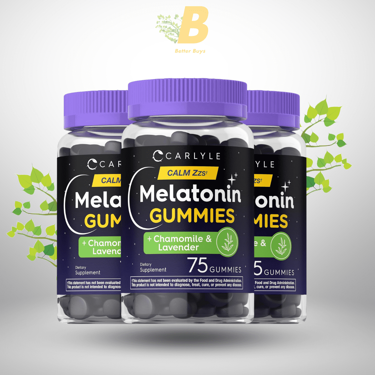 Carlyle Melatonin 3mg Gummies – 75 Count | With Chamomile & Lavender | Vegan, Non-GMO, Gluten-Free Sleep Support