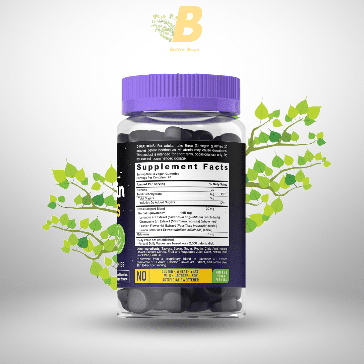 Strength: 3 mg Melatonin per serving