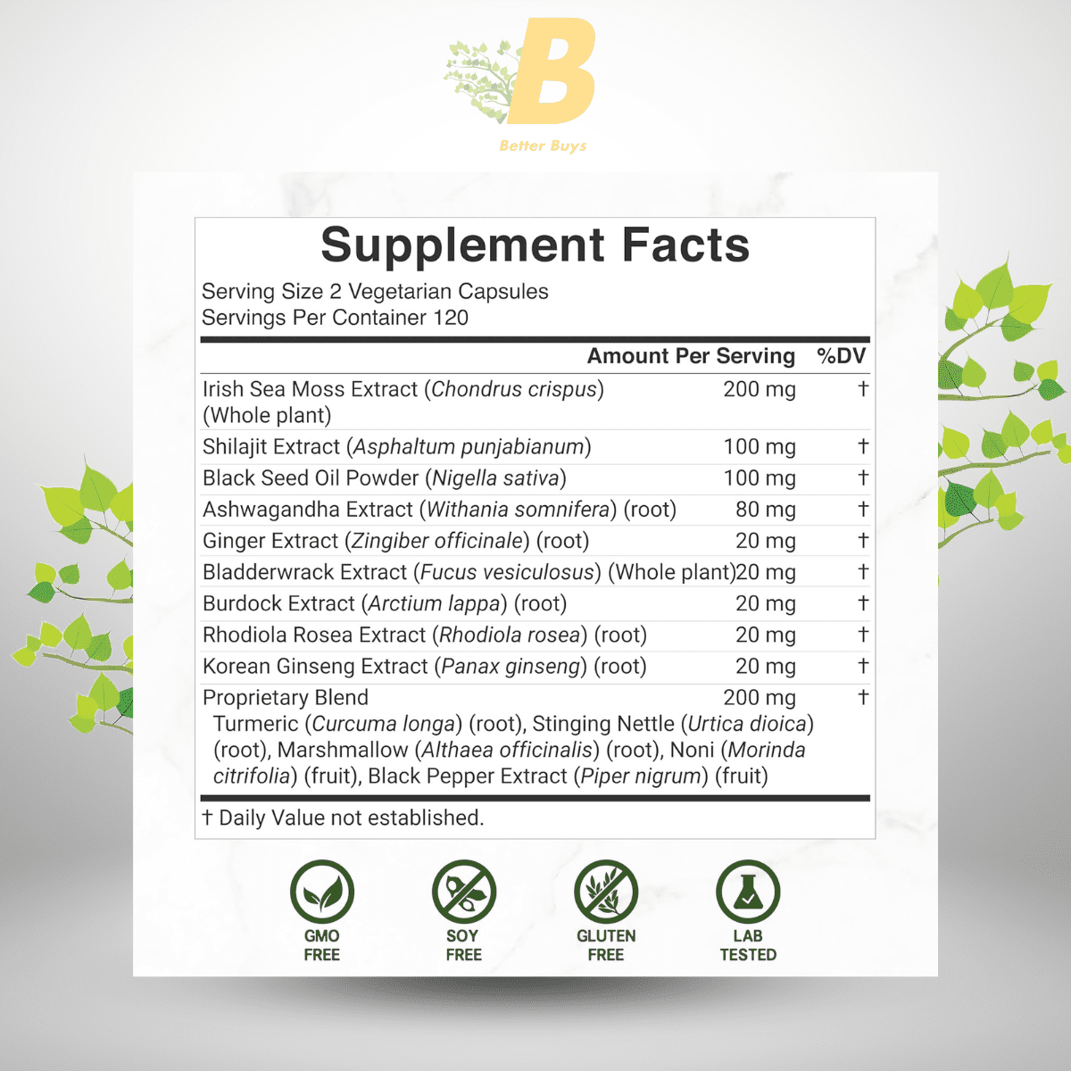 - Irish Sea Moss: 7,000mg
