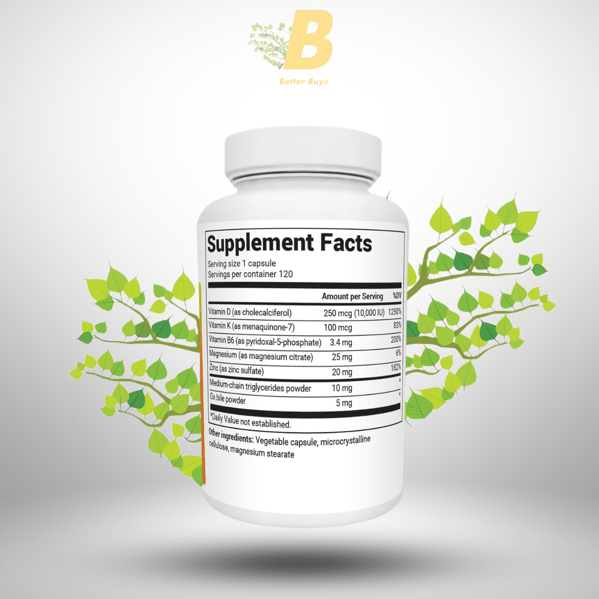 | Vitamin D3 (Cholecalciferol) | 10,000 IU | Supports bone health and immune function |