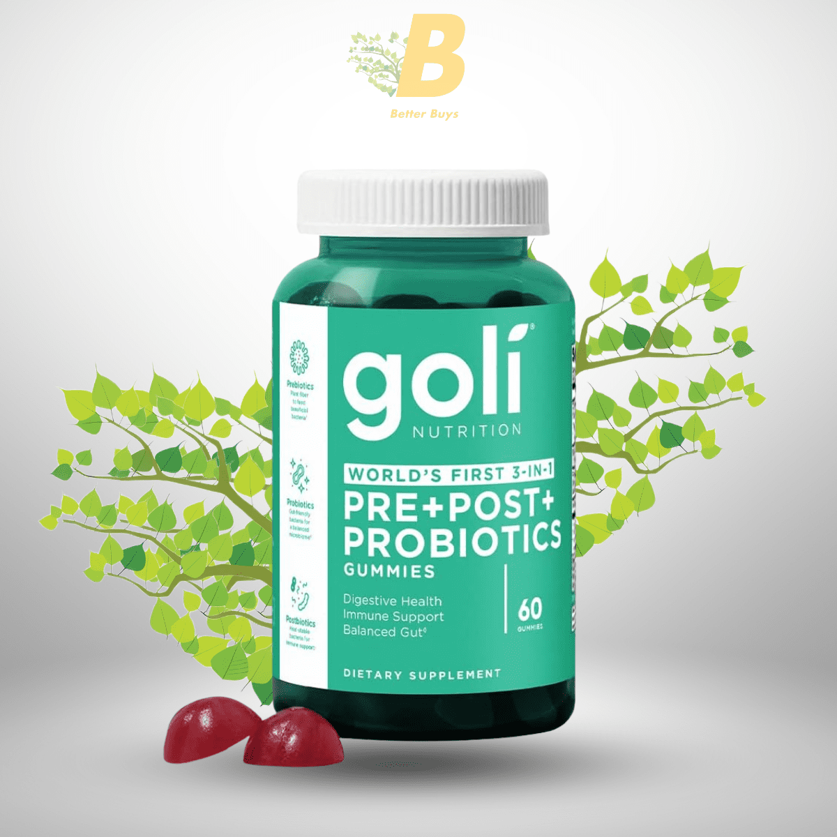 Goli Nutritional Supplement, Pre+Post+Probiotics Gummy – 60 Count – World’s First 3-in-1 Gluten-Free, Vegan, Non-GMO, and Gelatin-Free.