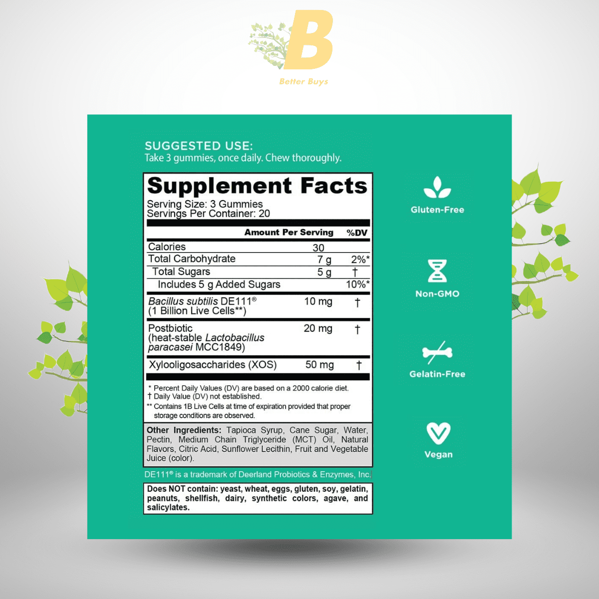 Vegan, gluten-free, non-GMO, and gelatin-free gummies are suitable for diverse dietary preferences and sensitivities. -