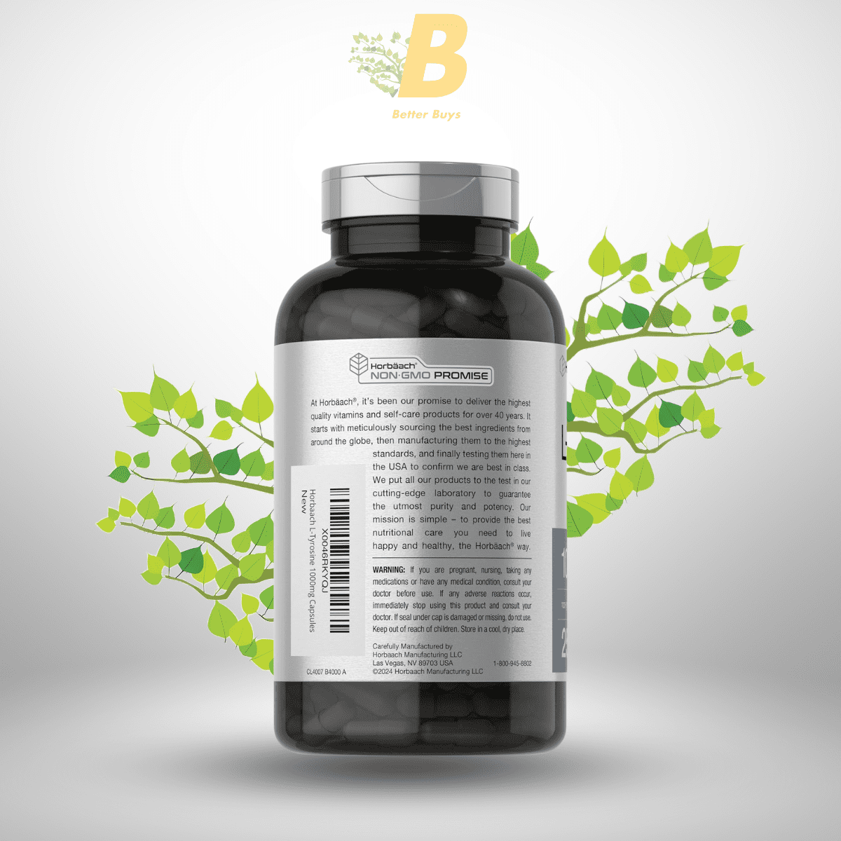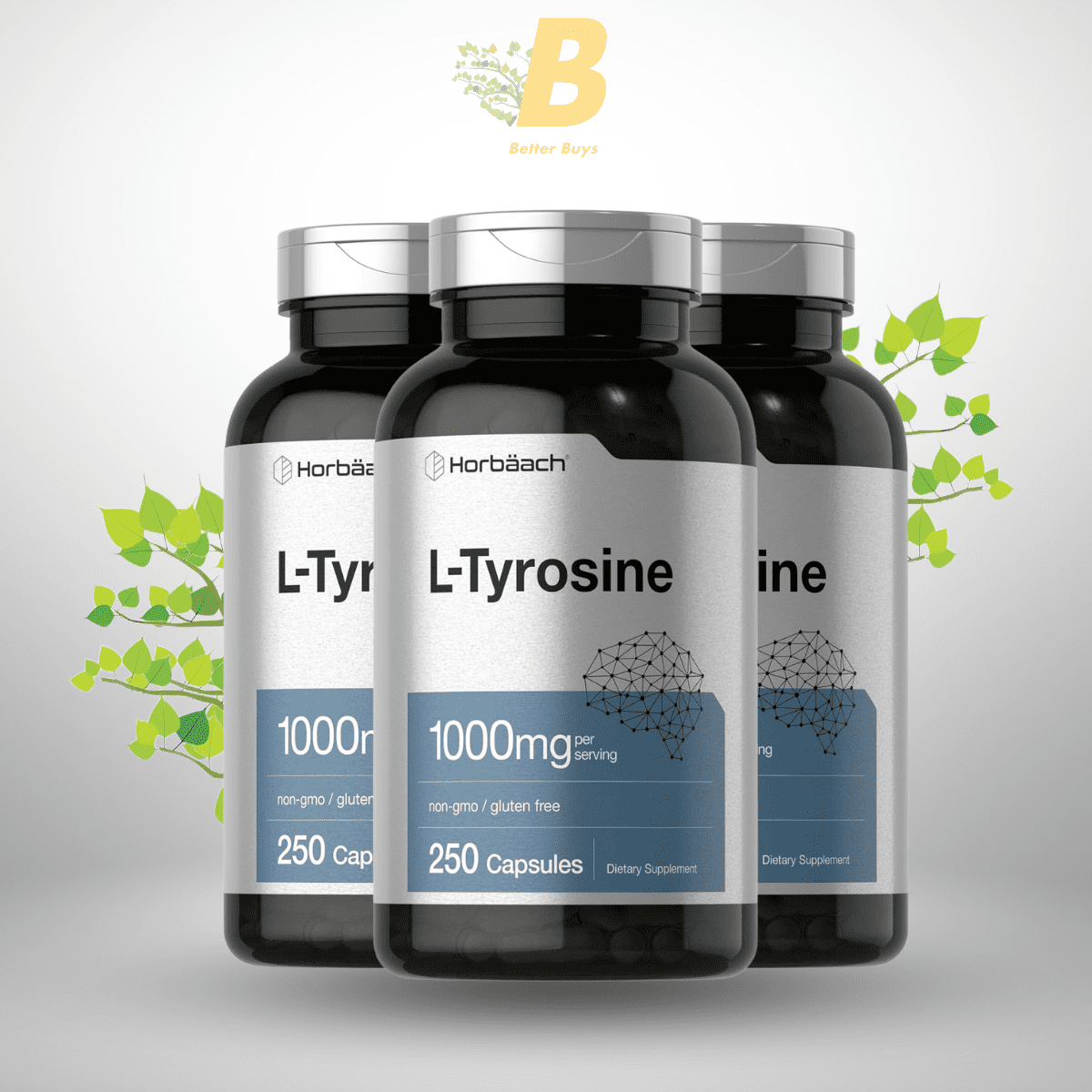 Horbaach L-Tyrosine Supplement | 1000mg | 250 Capsules | Non-GMO and Gluten Free Formula
