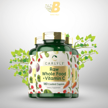 Carlyle Raw Whole Foods VIT C | 180 Coated Caplets | Dietary Supplement | Vegan, Non-GMO & Gluten Free