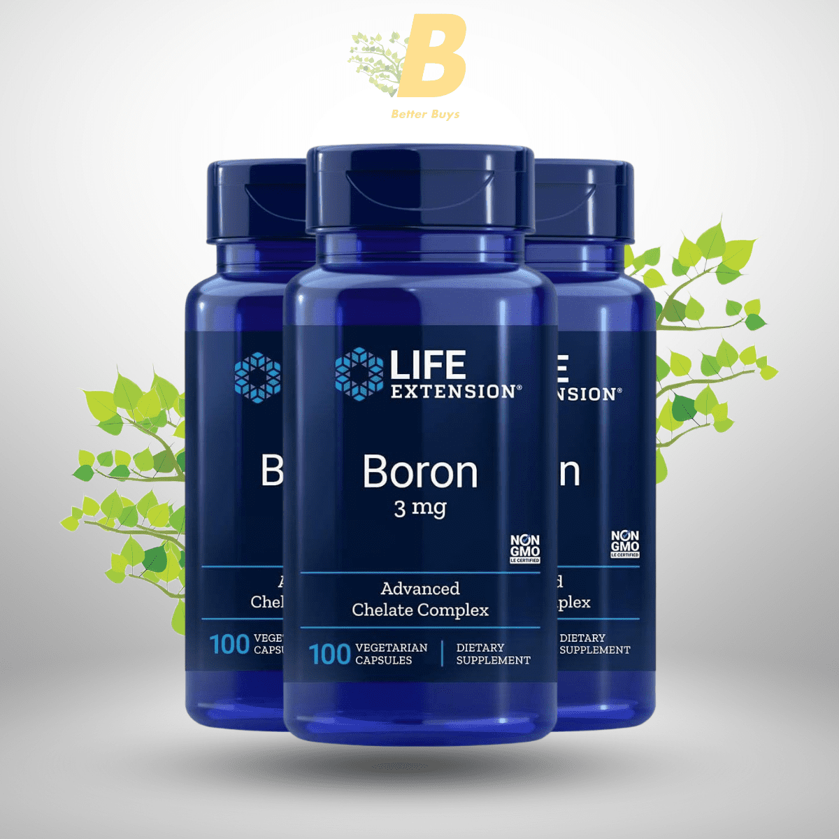 Life Extension Boron 3 mg with Riboflavin provides two essential nutrients: Boron, a trace mineral, and Riboflavin (Vitamin B2), a vital vitamin for the body. Boron is integral in promoting bone health, immune function, and hormone balance. Riboflavin further enhances these benefits, especially for supporting healthy metabolism and nervous system function. With 100 vegetarian capsules per bottle, this gluten-free and non-GMO product is a top choice for individuals who care about the purity and quality of their supplements.