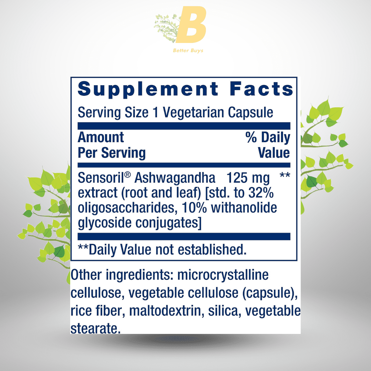 | Ashwagandha Extract (root & leaf) | 600 mg | N/A |