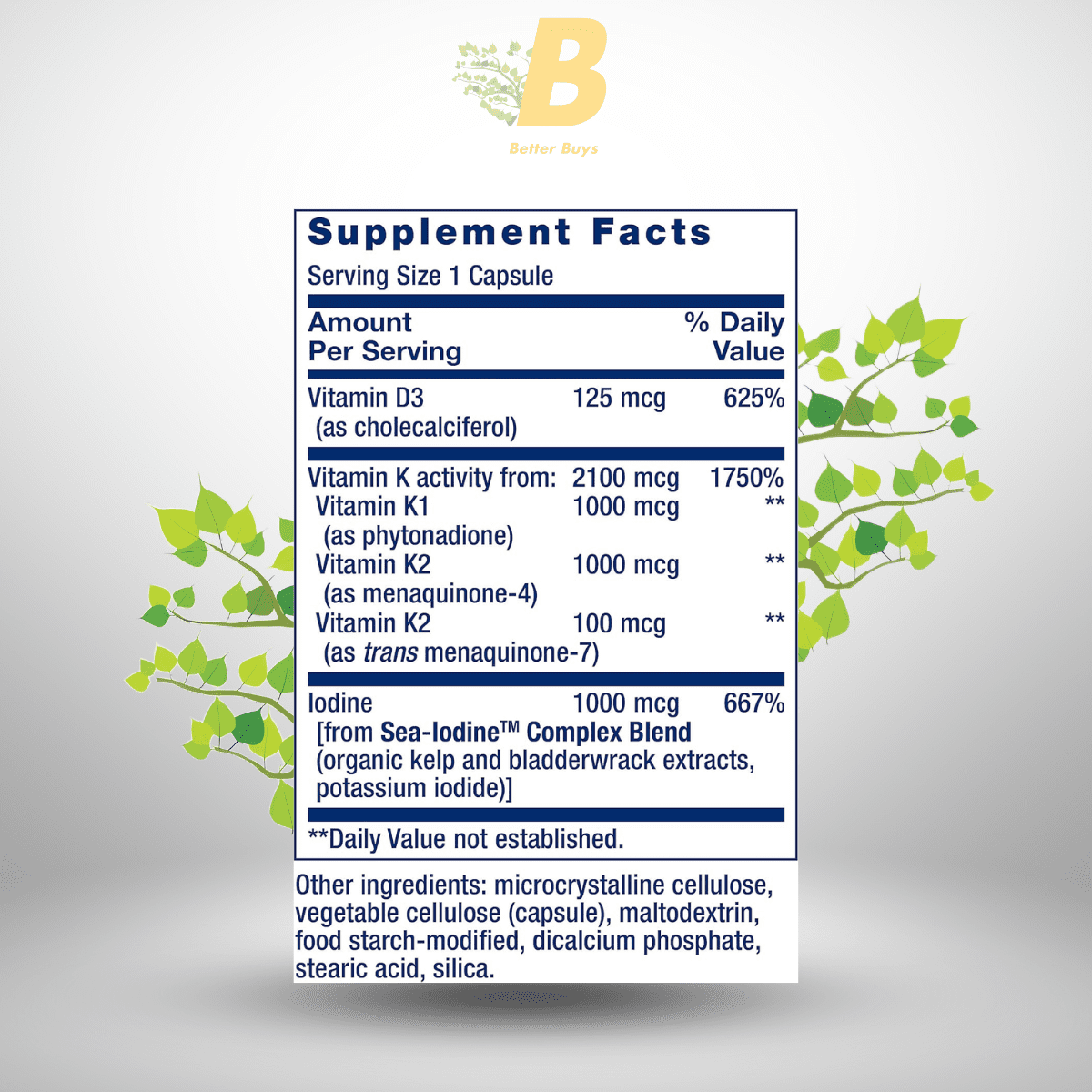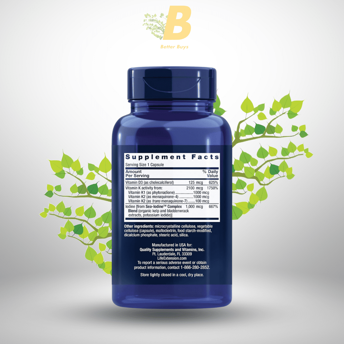 Life Extension Vitamins D and K with Sea-Iodine contains the following high-quality ingredients: