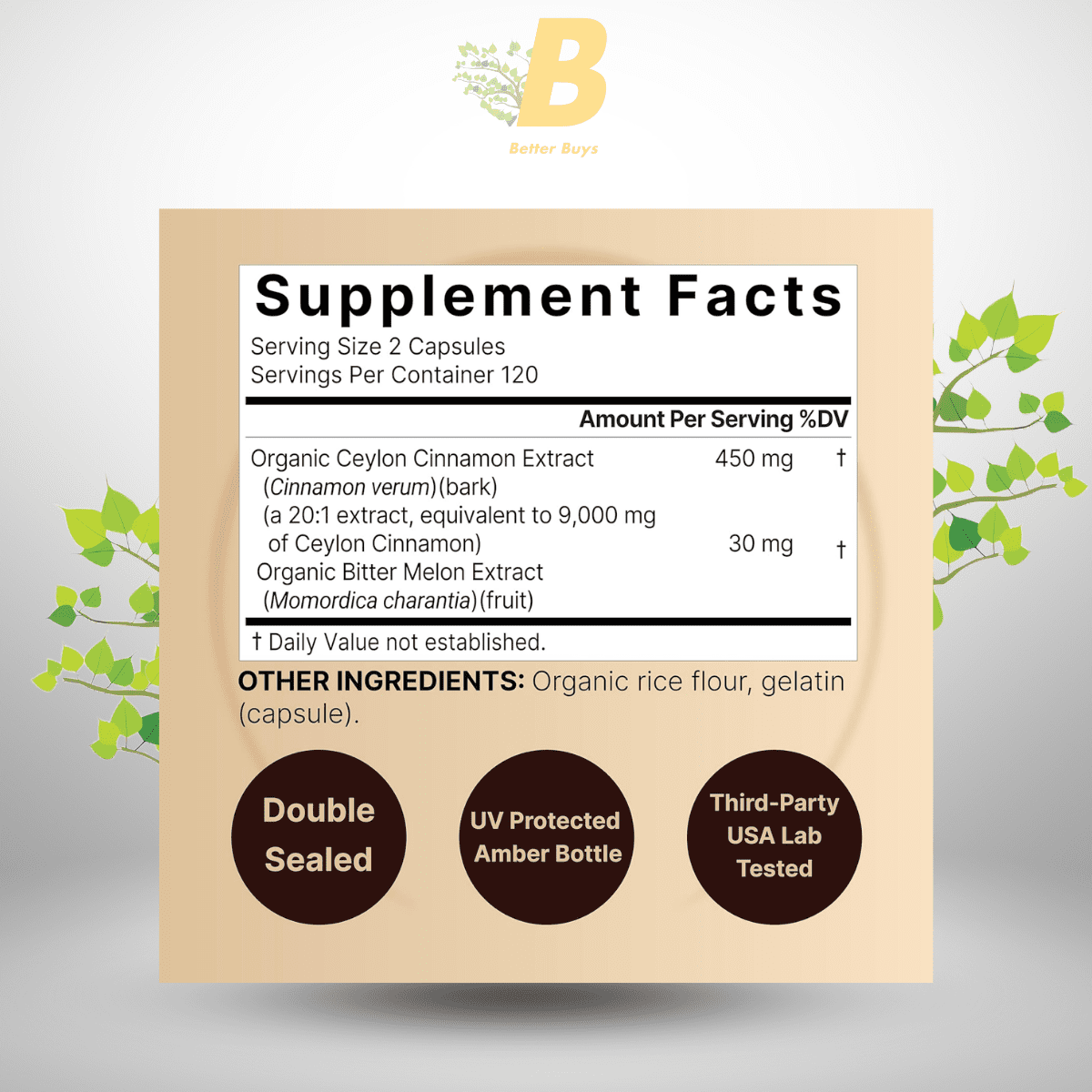 This supplement combines two highly effective ingredients—Ceylon cinnamon and bitter melon—which work synergistically to improve your metabolism and support overall health.