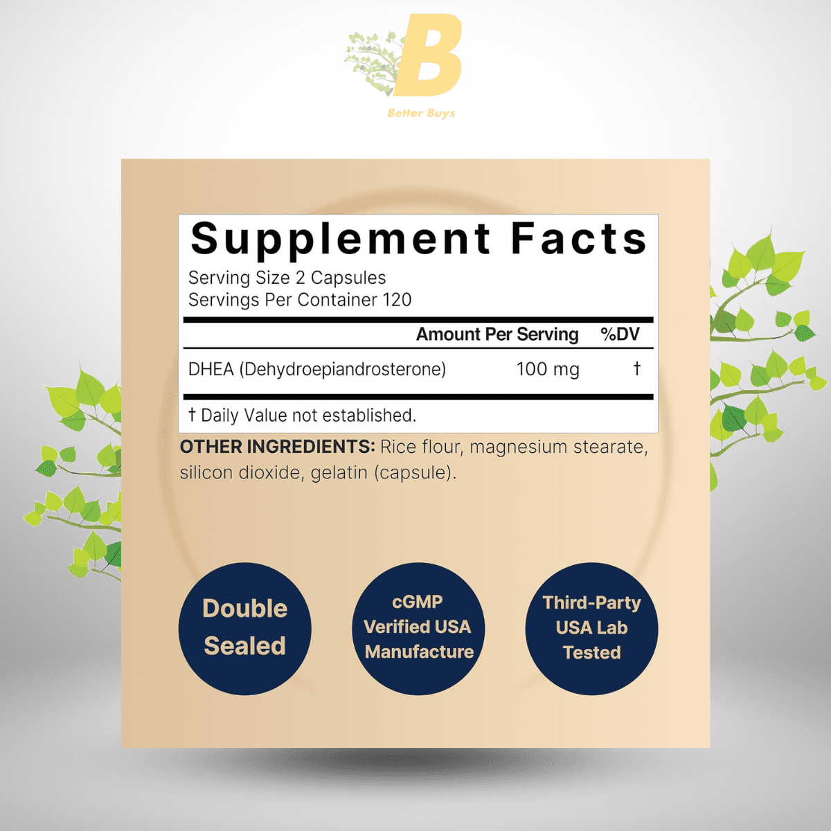 This dosage provides 100mg of DHEA per serving, which is an optimal amount for supporting your energy levels and healthy aging without exceeding recommended intake.
