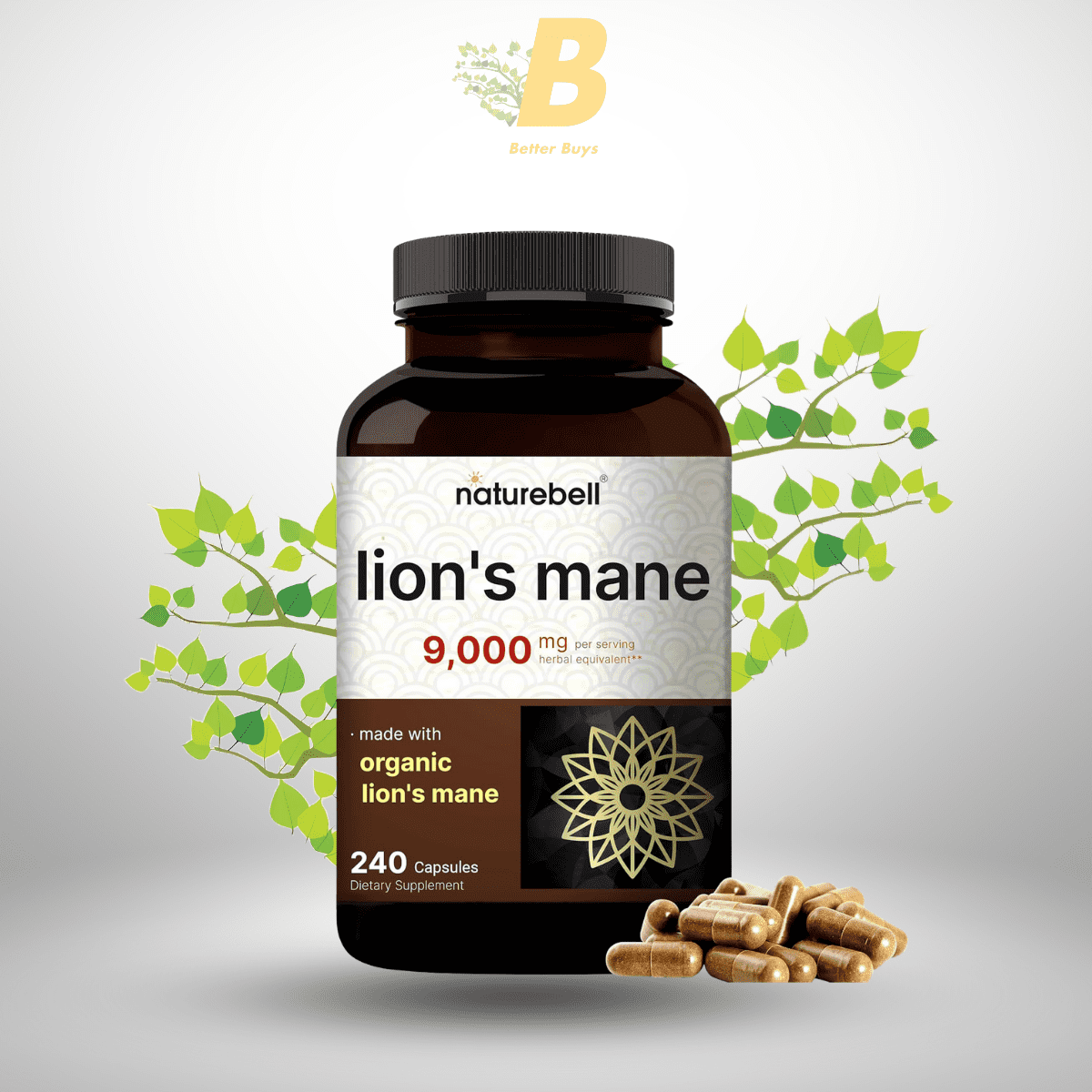 NatureBell Lion’s Mane Mushroom Supplement Capsules 9,000mg 240 caspule – Premium Cognitive & Immune Support