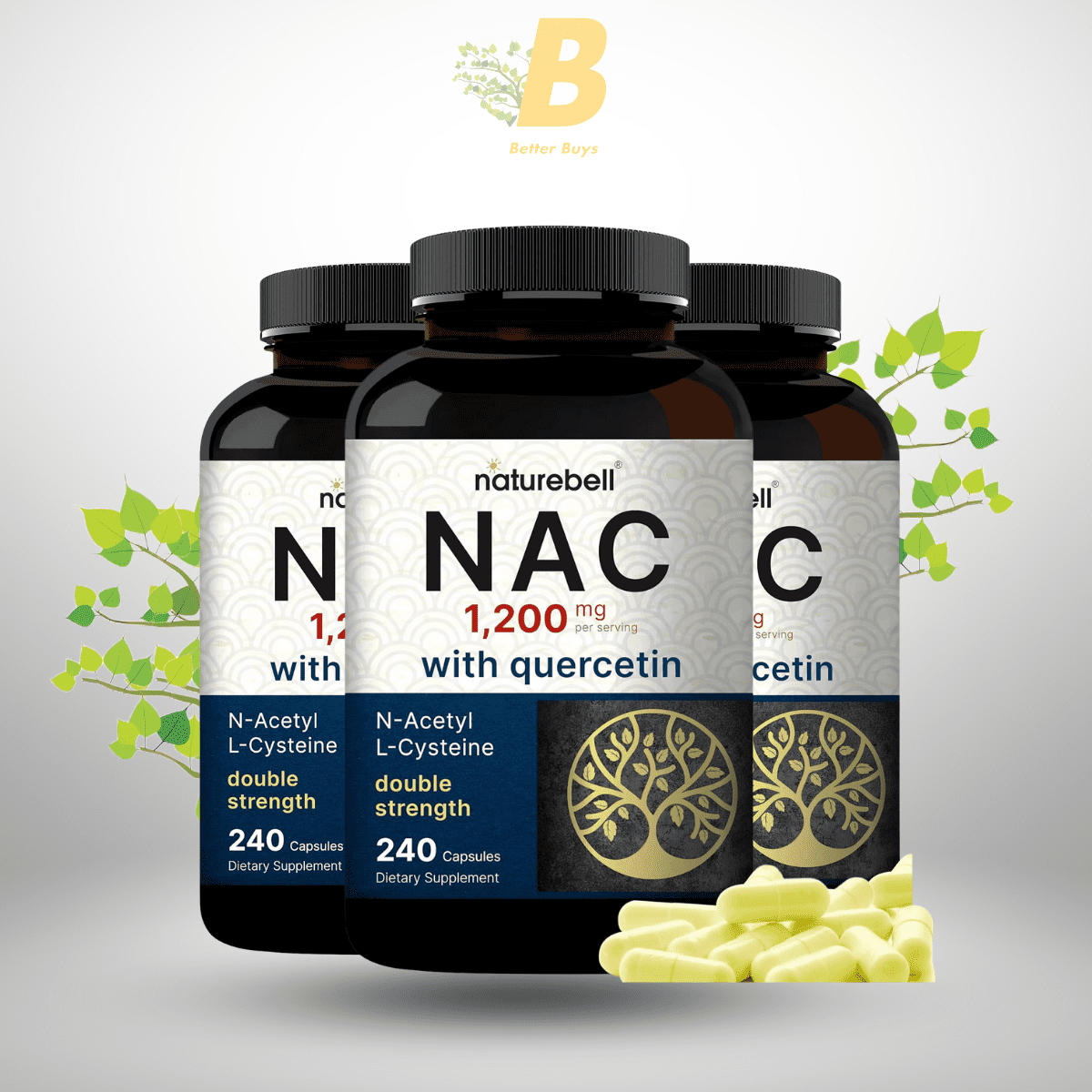 Naturebell NAC Supplement 1200mg Per Serving | 240 Capsules, N-Acetyl Cysteine with Quercetin | Double Strength – Support for Immune, Liver, & Lung Health