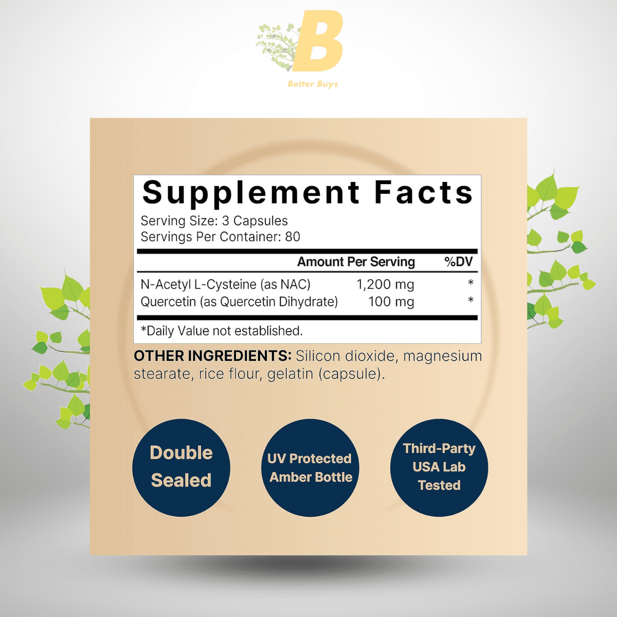 | N-Acetyl L-Cysteine (NAC) | 1200mg |