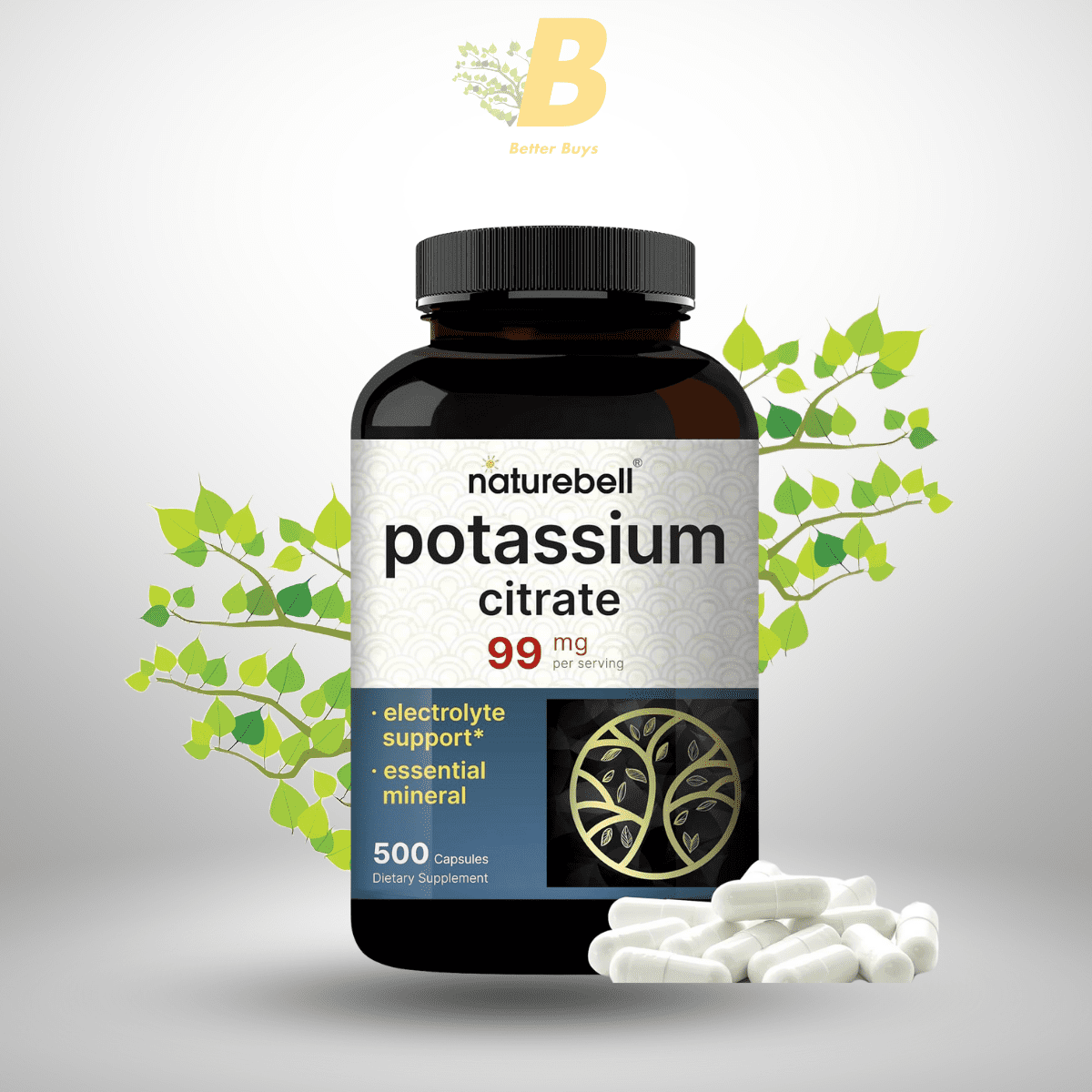 Naturebell Potassium Citrate Supplement 99mg, 500 Capsules , Easily Absorbed Chelated Form – Essential Mineral Electrolyte Balance – Supports Muscle, Bone, & Heart Health – Non-GMO