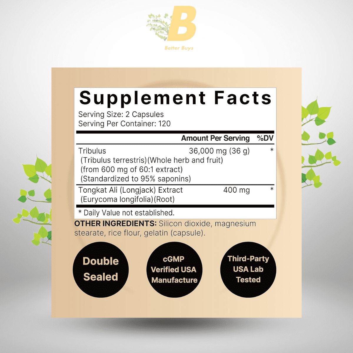 Tribulus Terrestris Extract: Known for boosting energy, stamina, and muscle strength, Tribulus is packed with saponins that are key to its effectiveness.