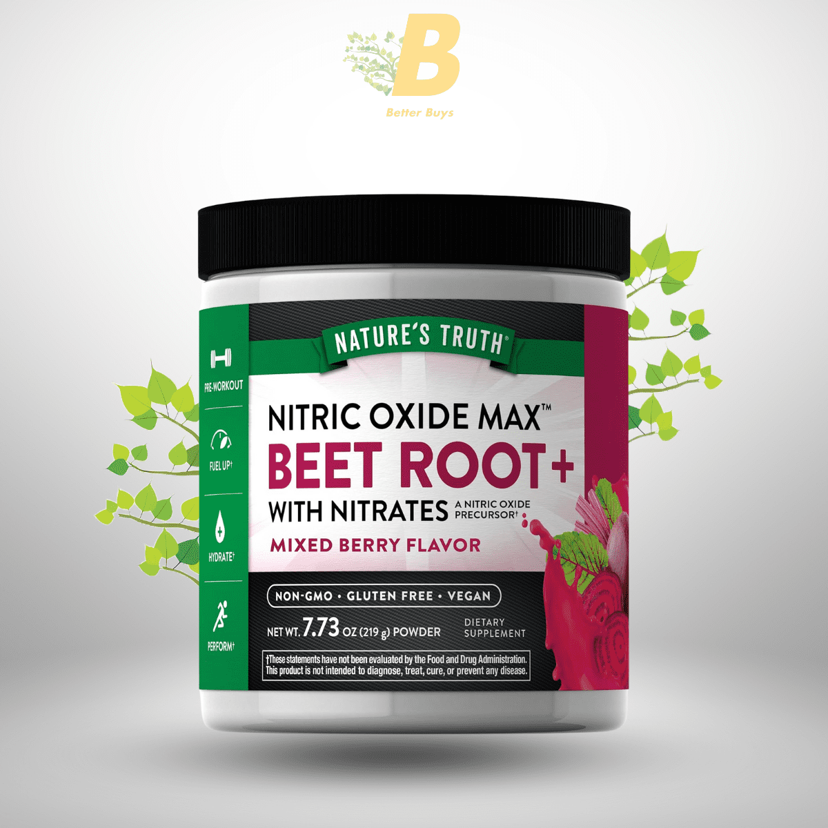 Nature’s Truth Beet Root Powder Nitric Oxide Supplement 7.73 oz for Men & Women Vegan, Non-GMO Mixed Berry Flavor