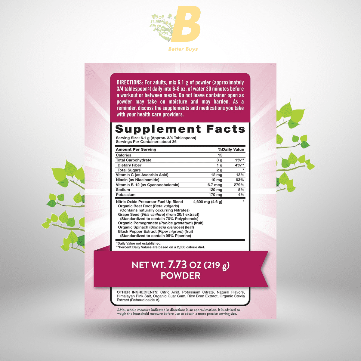 Recommended Dosage: Mix one scoop (approx. 5g) of Nature’s Truth Beet Root Powder into water or your favorite beverage.