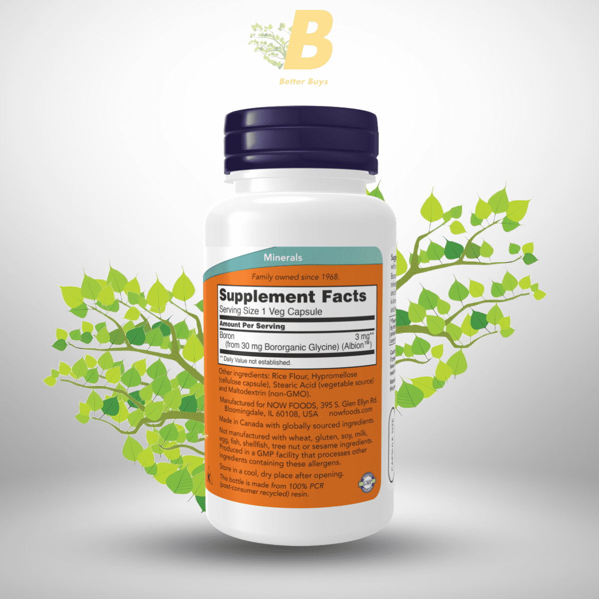 NOW Boron 3 mg features a clean, high-potency ingredient profile for optimal efficacy as the best supplement in Bangladesh. Key components include: