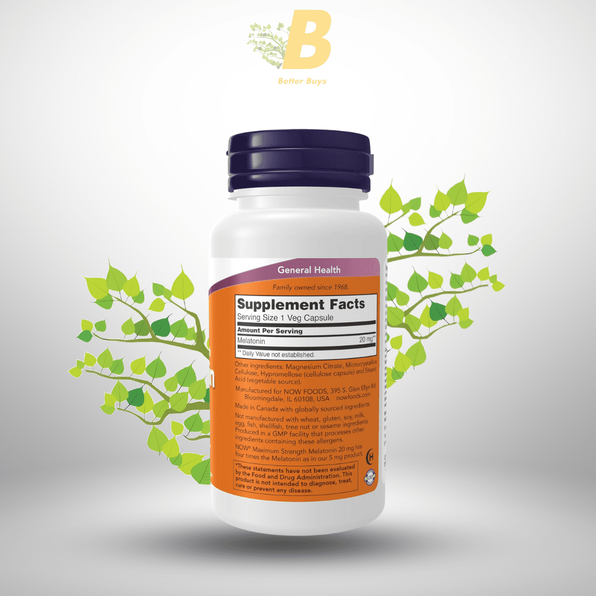 Whether you’re experiencing jet lag, insomnia, or general sleep disturbances, NOW Melatonin 20mg offers a safe, non-habit-forming solution.