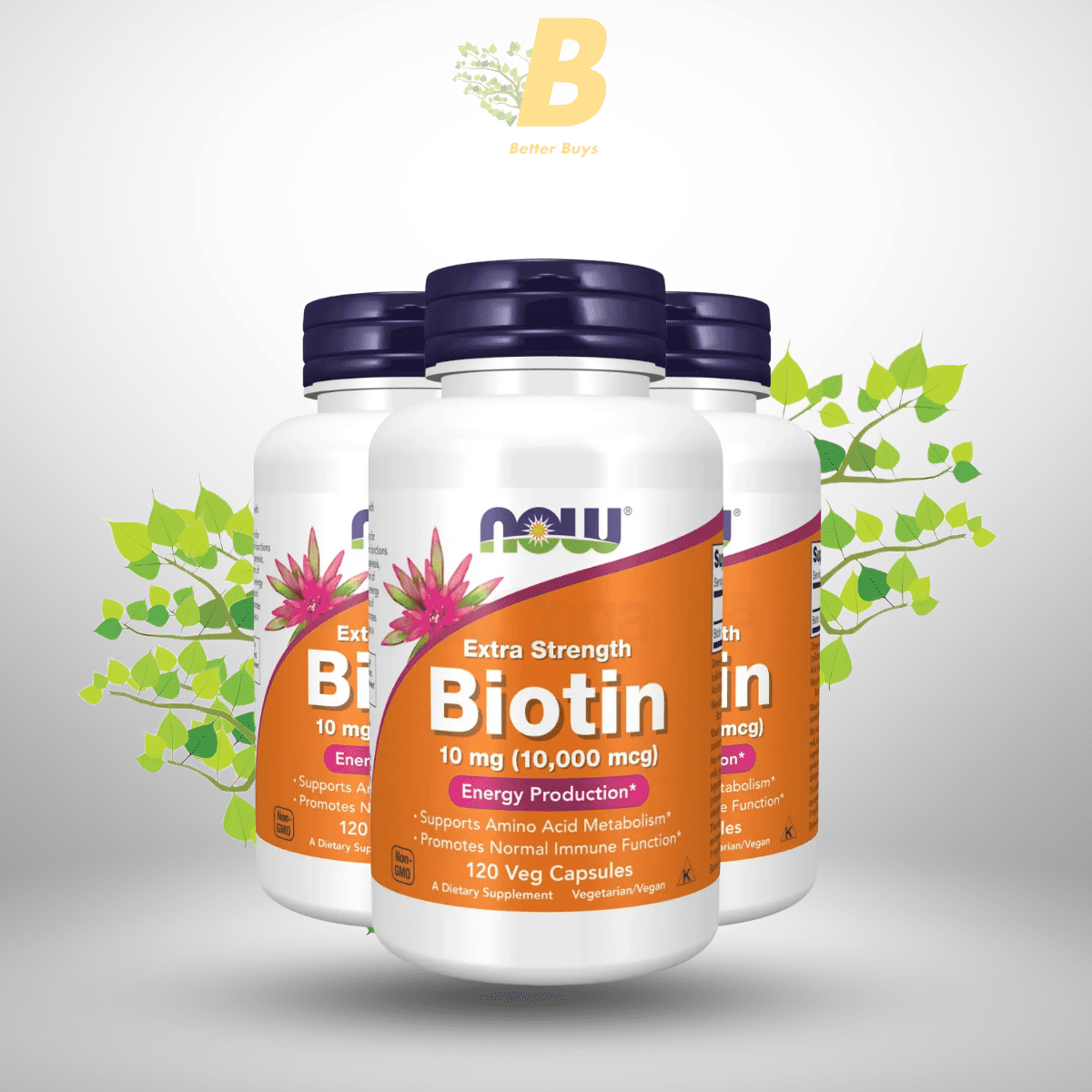 NOW Extra Strength Biotin 10,000 mcg offers a multitude of benefits, making it the best supplement in Bangladesh for hair, skin, nails, and energy. Its high-potency biotin formula provides persuasive advantages for both men and women, backed by nutritional science. Here’s a detailed breakdown: