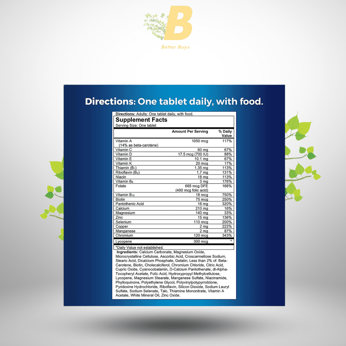 The multivitamin also includes a special blend of nutrients. These add more benefits beyond basic vitamins and minerals.