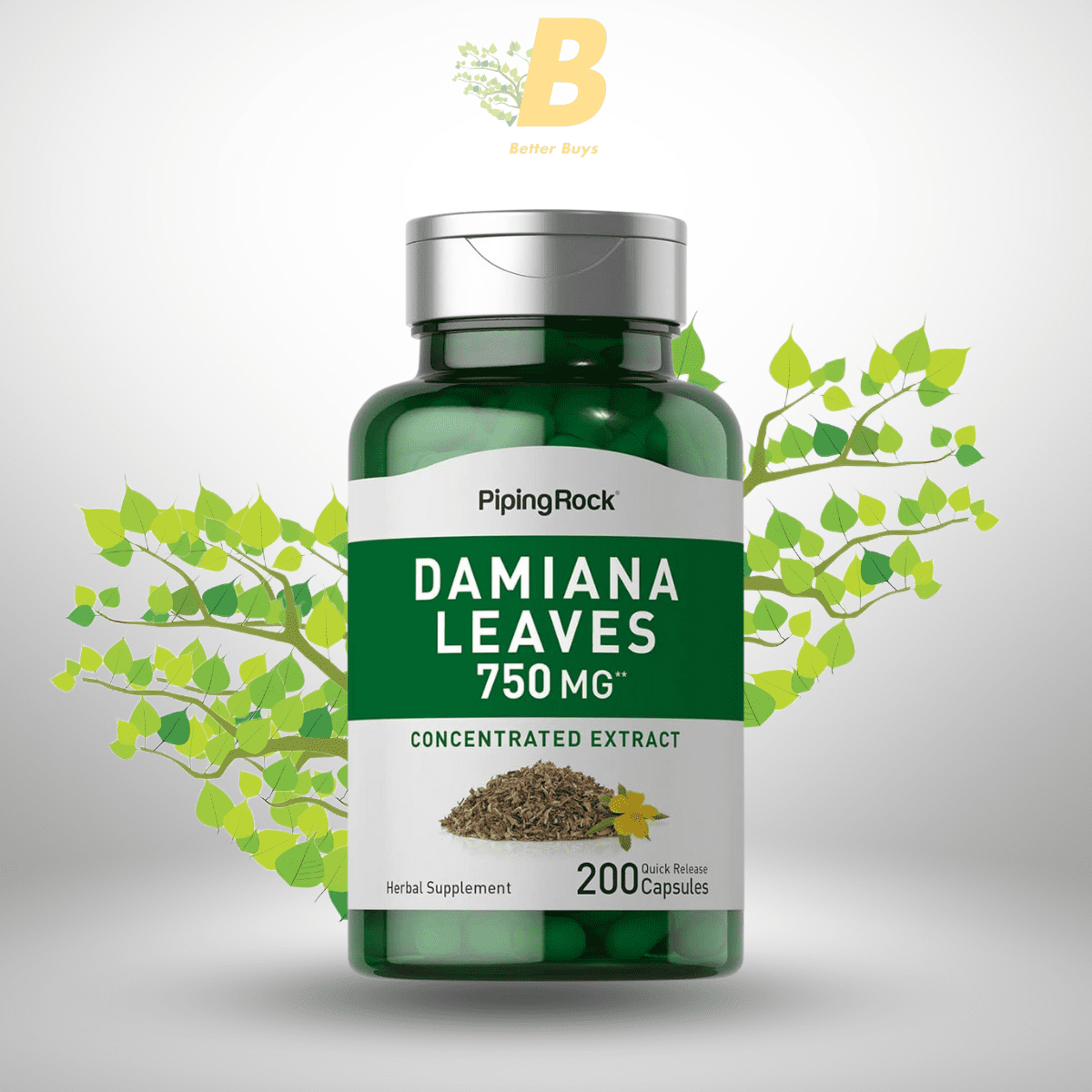 Piping Rock Damiana Leaf Capsules | 750 mg | 200 Count | Herb Extract Supplement | Non-GMO, Gluten Free