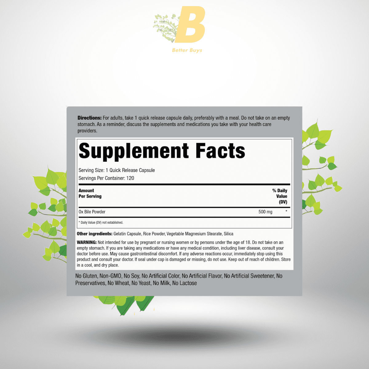 - Allergy: Avoid if allergic to ox bile or any ingredients