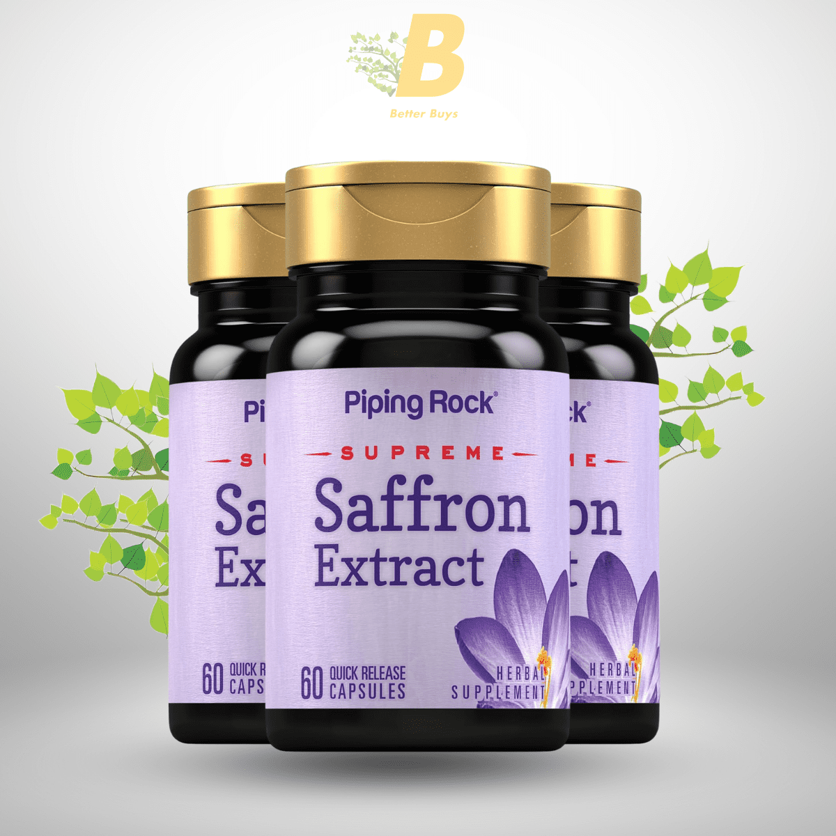 Piping Rock Saffron Extract capsules contain natural saffron extract. This extract is derived from high-quality saffron threads. Saffron is a spice with many health benefits. It is known for its antioxidant properties. These capsules aim to provide these benefits in a simple form.