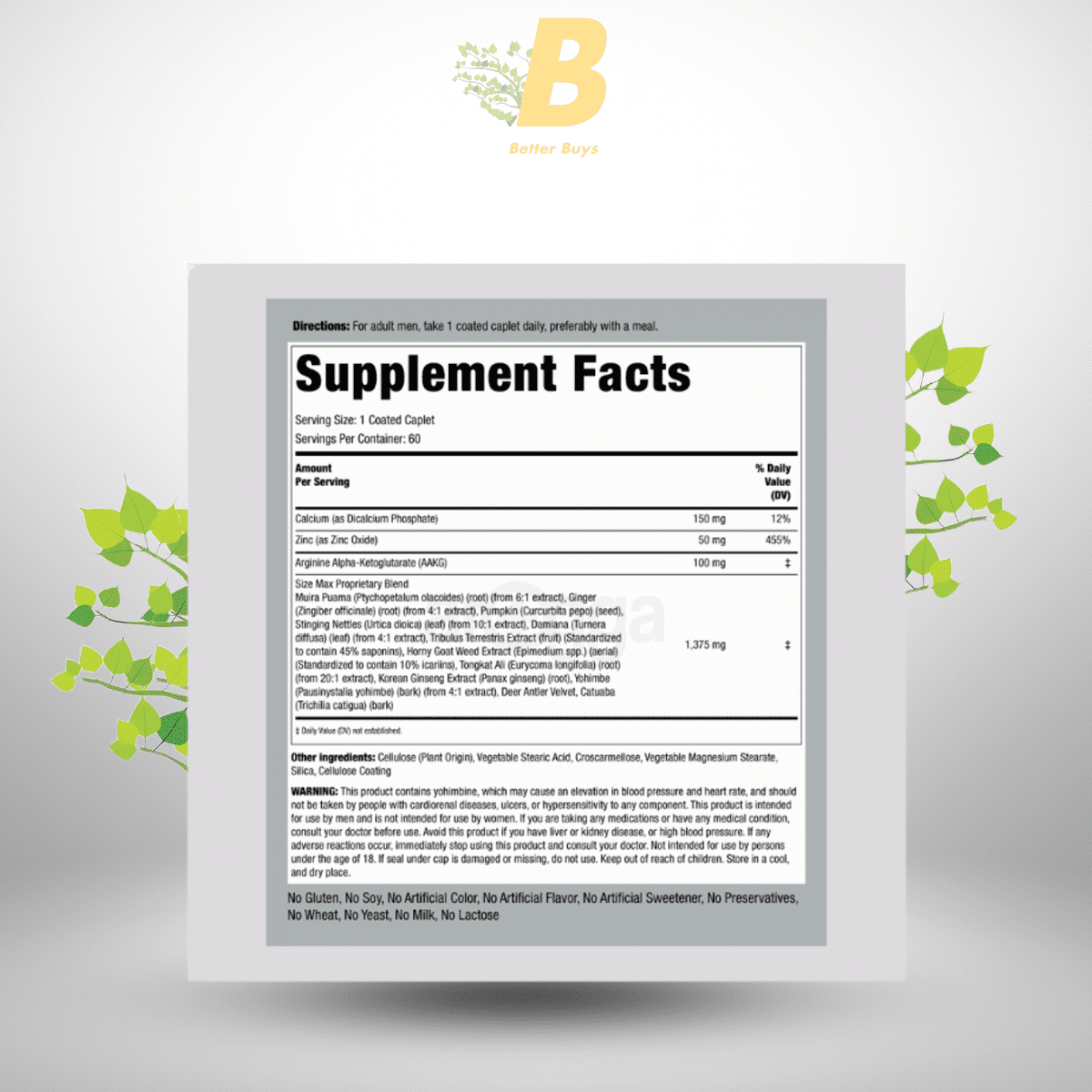 Formulated with herbal ingredients like Horny Goat Weed, Tongkat Ali, and Korean Ginseng to boost energy, endurance, and overall male health. -