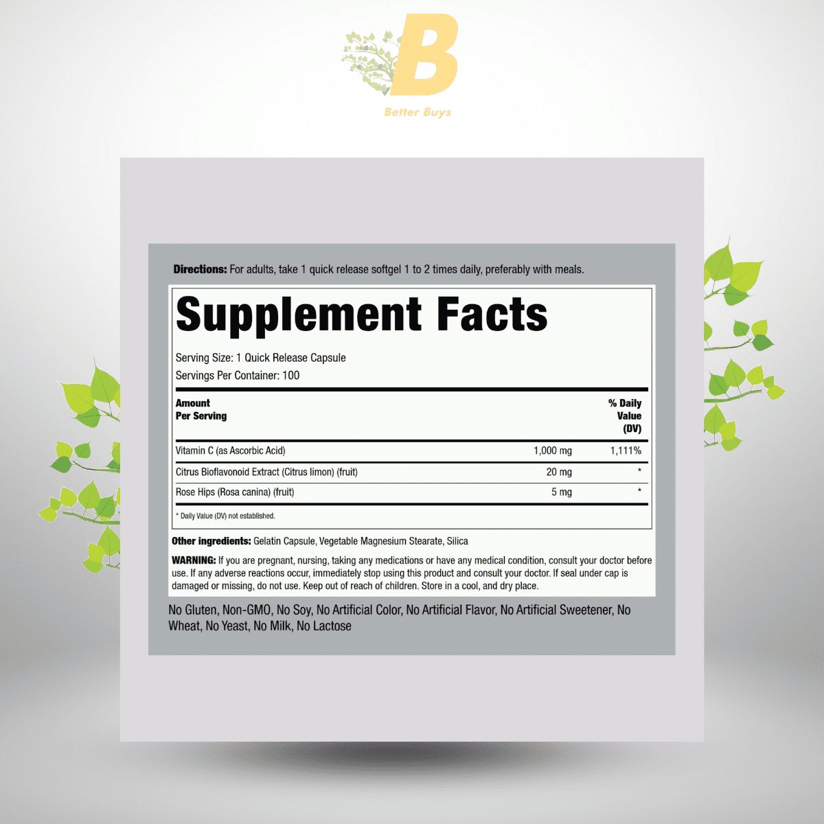 Gluten-free? Yes, non-GMO and vegetarian (except gelatin).