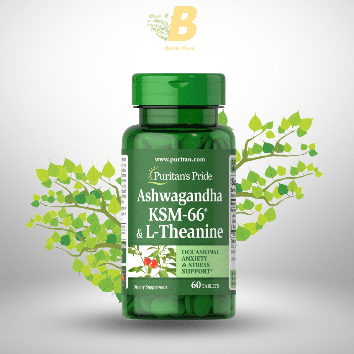 Puritan’s Pride Ashwagandha KSM-66 & L-Theanine 60 Tablets