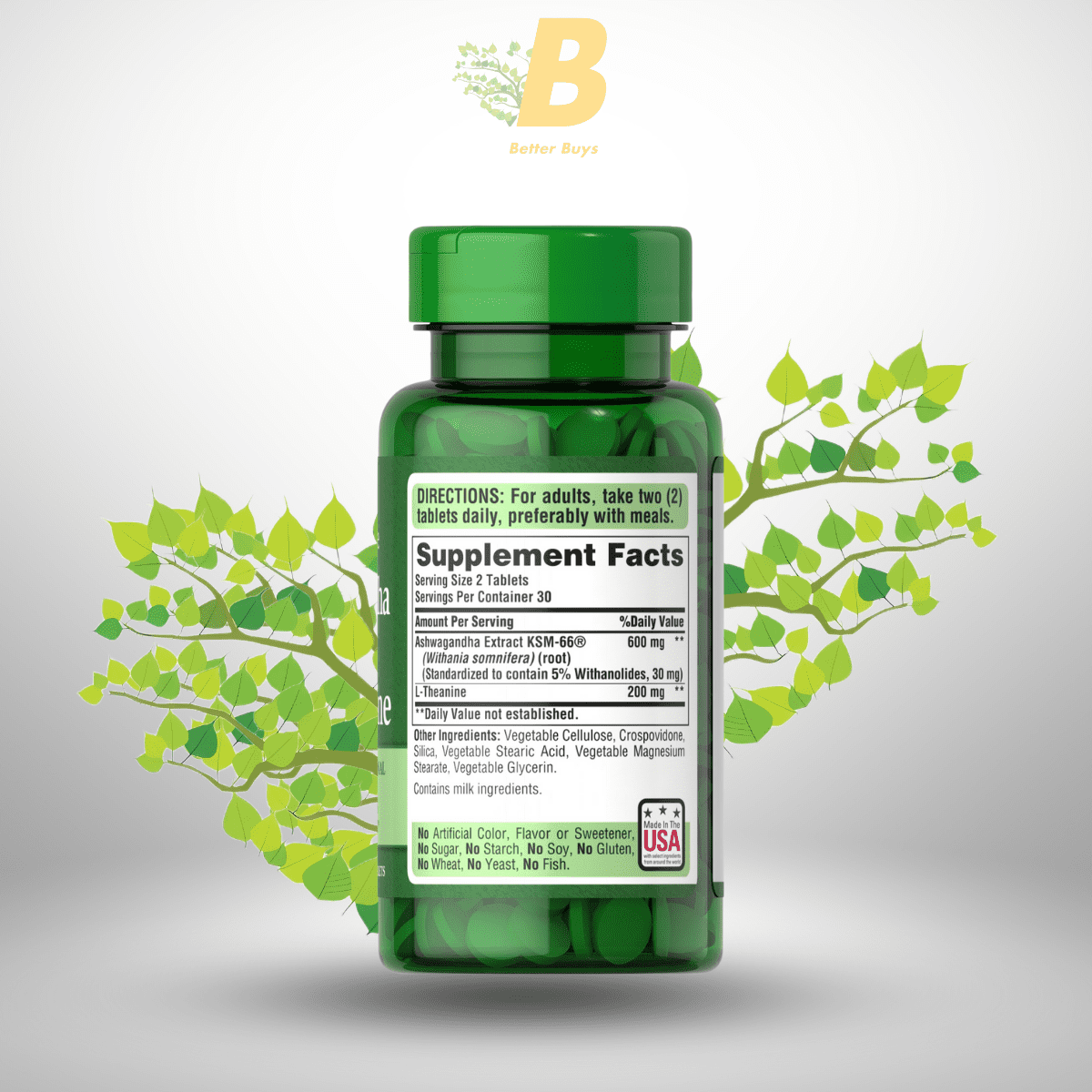 Puritan’s Pride Ashwagandha KSM-66 & L-Theanine features a clean, high-potency ingredient profile for optimal efficacy as the best supplement in Bangladesh. Key components include: