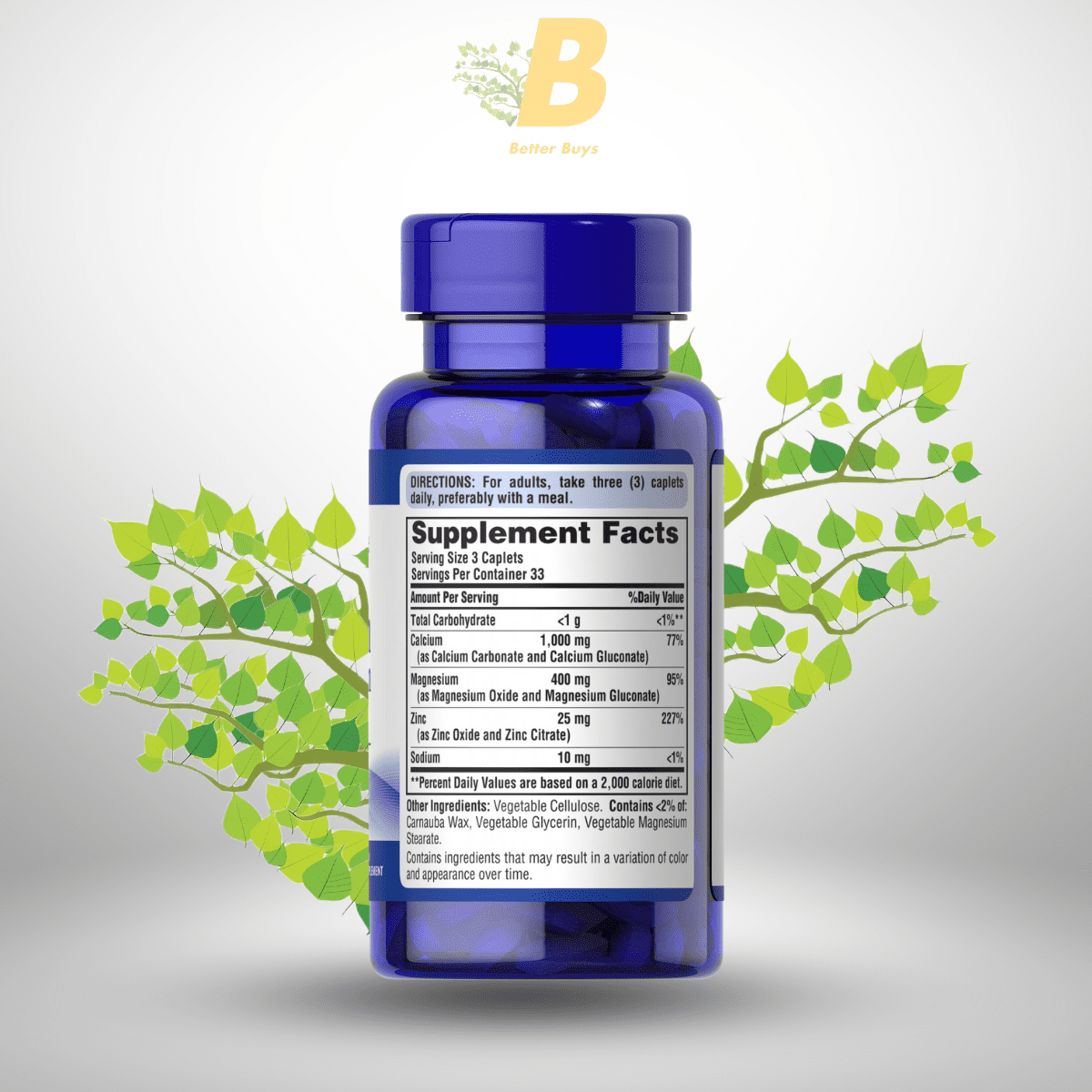 Puritan’s Pride Calcium Magnesium Zinc Caplets 100 Count
