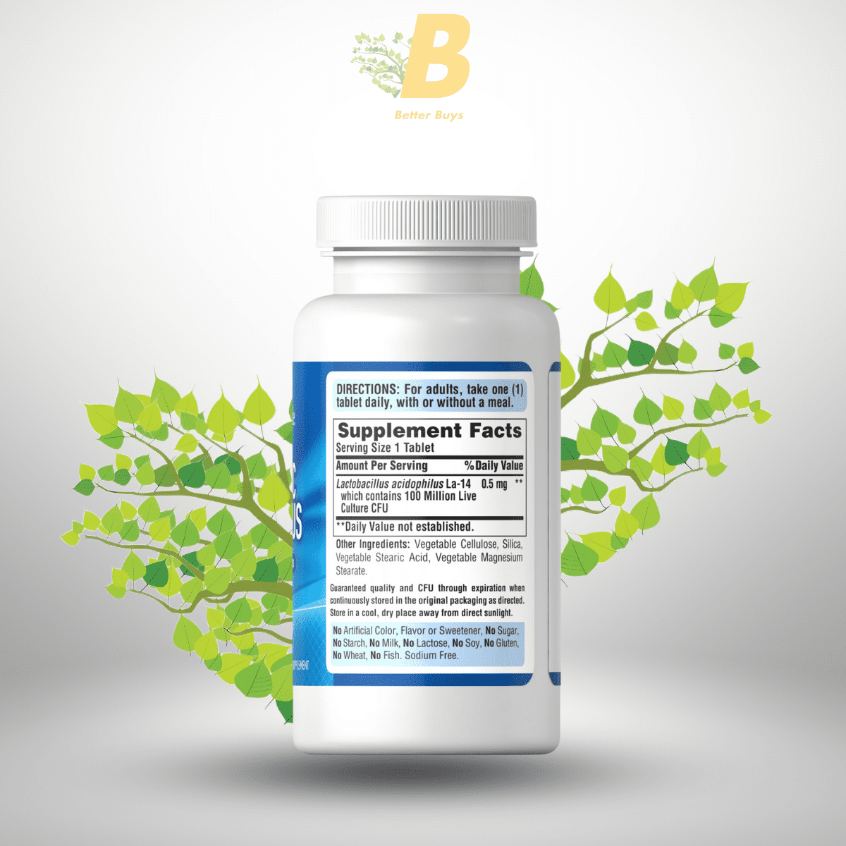 Lactobacillus Acidophilus (100 million active cultures at manufacture): Supports gut and immune health, daily value not established.