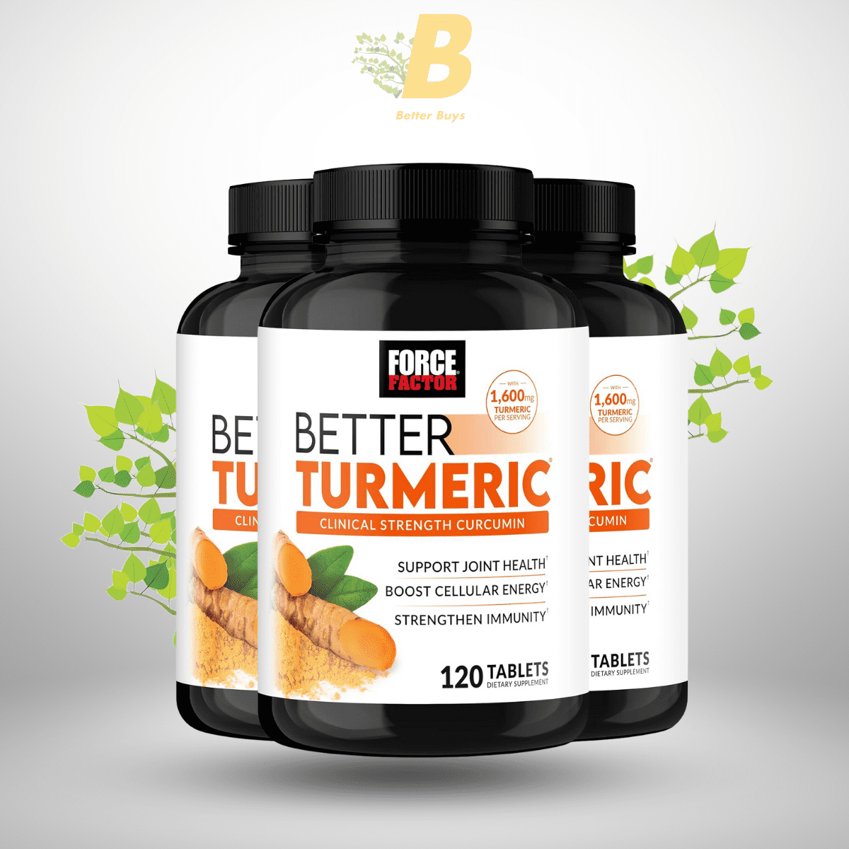 FORCE FACTOR Better Turmeric Curcumin 1600mg with Black Pepper & Ginger, Clinical Strength Joint Support Supplement, Superior Absorption, 120 Tablets