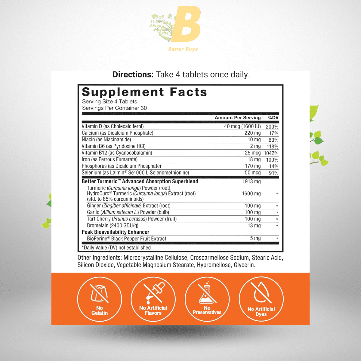 - +329% Better Absorption: BioPerine black pepper extract helps the body absorb curcumin more effectively.