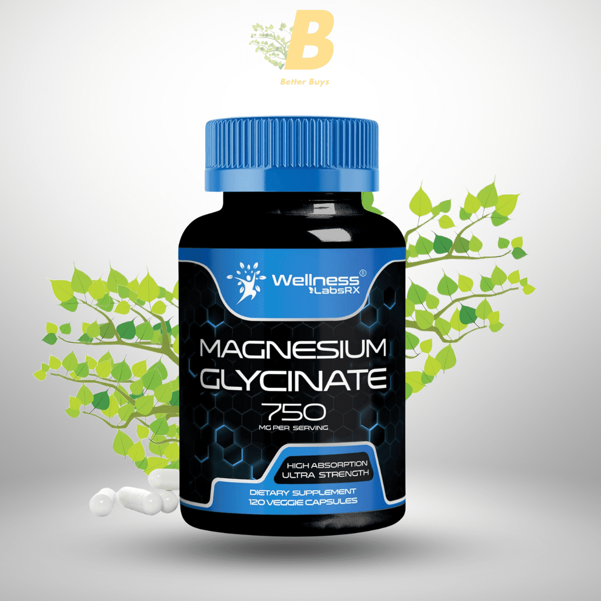 Wellness Labs Magnesium Glycinate 750mg | High Absorption Chelated Calm Support for Women and Men – Glicinato De Magnesio, Magnesium Chelate Supplement for Heart Health, Sleep Support – 120 Count
