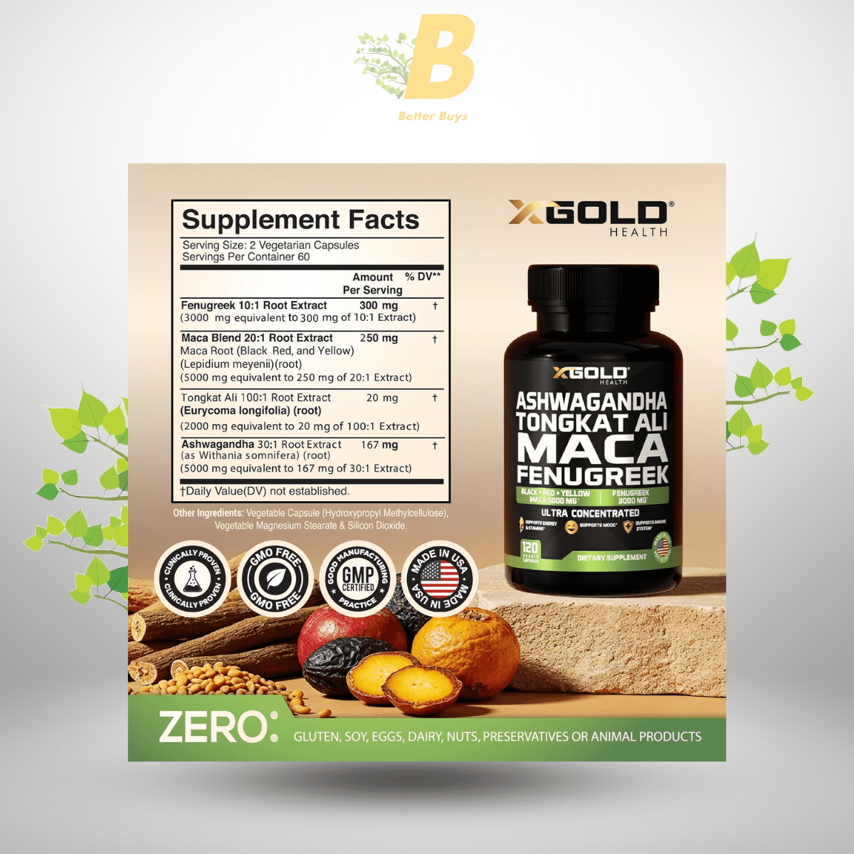 X Gold Health Ashwagandha 5000mg + Tongkat Ali 1000mg + Maca Root 5000mg + Fenugreek 3000mg Capsules in Bangladesh